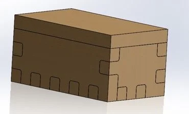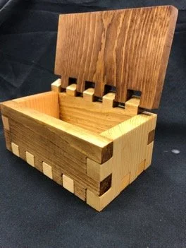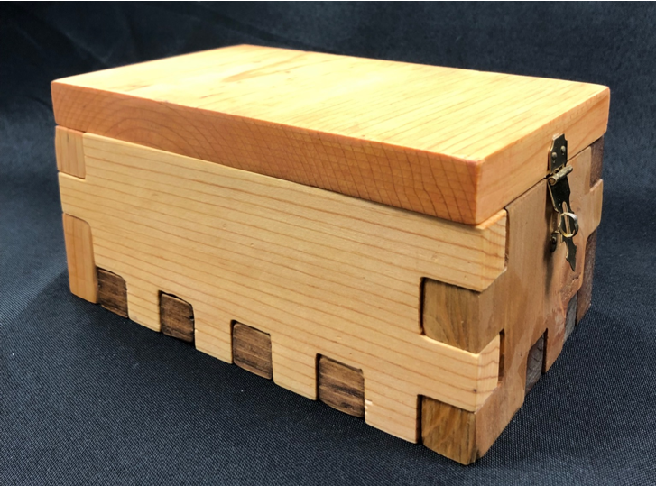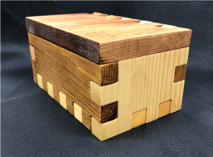 This project focused on dimensioning and tolerances. I challenged myself by creating a puzzle box where the rest of my classmates went for designs held together with glue. By the second iteration, I decided a hinge function for the lid was a more cohesive design. The entire box is friction fit and can be assembled and disassembled at will.