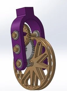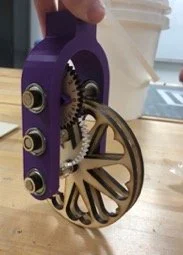 The purpose of this project was to come up with a gear assembly that could accurately measure 20'. The design had to stay within material and size constraints. This project required knowledge of gear ratios and tolerancing for threads and pressure fits.